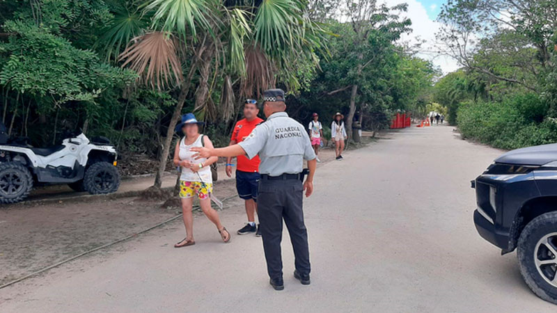 En cumplimiento de la Estrategia Nacional de Seguridad Pública, en Quintana Roo, la Guardia Nacional resguarda y brinda seguridad a turistas en el Parque Nacional del Jaguar, ubicado en Tulum, catalogado como área natural protegida con más de dos mil hectáreas.