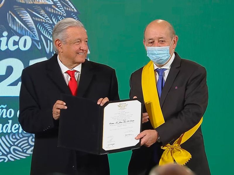 En tanto, Jean-Yves Le Drian agradeció a López Obrador por la condecoración, la cual consideró es una muestra de la amistad entre ambas naciones.
